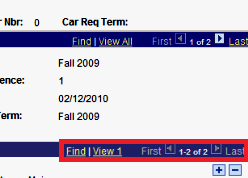 Student program information copied from the Student Program is found at the top of the page. Plan information is found at the bottom of the page. - Use the arrows on the second blue line to scroll through plans or click View All.