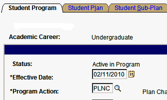 These instructions cover plan changes with no program change. If you are changing the student’s primary major from one college to another (Education to A&S, for instance) follow these instructions for changing a student’s program and plan.Certificates can be added ONLY for students on 2015 or later catalog.