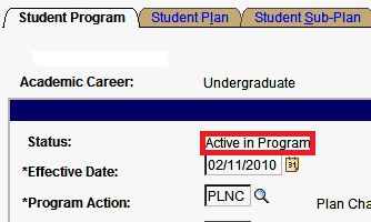 - Make sure the student is currently enrolled before making changes. Status should read Active in Program.