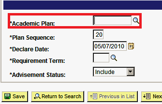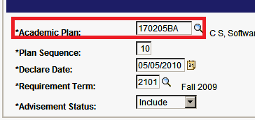 - Type over the academic plan code with the new code. Plan Sequence will automatically update the Declare Date.