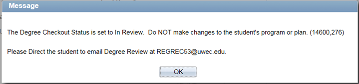 NOTE: If the student has been reviewed for graduation you will get an error message. If you get this message, email degreereview@uwec.edu to make the change.