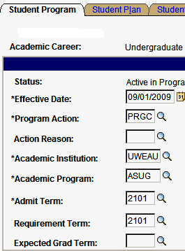 - Click Student Program/Plan
