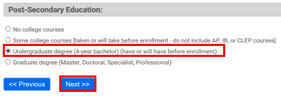 - Select either Special student at the undergraduate level or Special student at the graduate level.