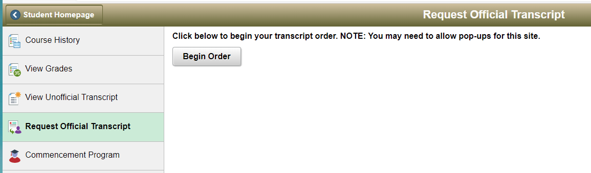 - Select Begin Order and you will be routed to our third party vendor. You will need to enable pop-ups for this site.