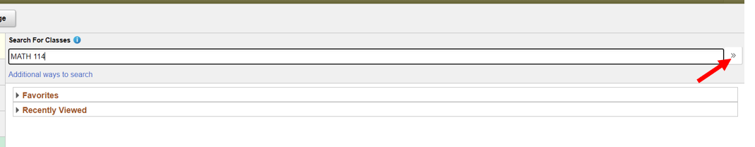 - Begin by entering a keyword. For best results this will be a Subject and Course Number (ex. MATH 114) and then execute the search.