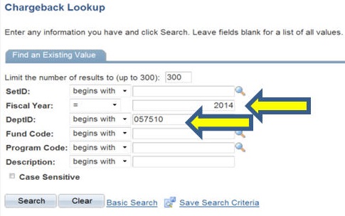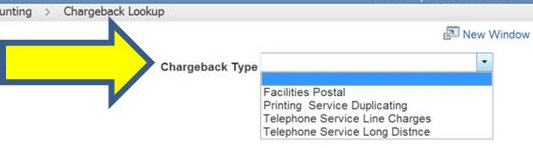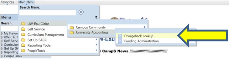Click Main Menu > UW-Eau Claire > University Accounting > Chargeback Lookup.